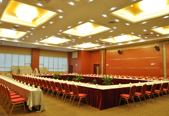 國(guó)際宴會(huì)廳:多功能國(guó)際宴會(huì)廳采用高天花、無柱式設(shè)計(jì),現(xiàn)代豪華,典雅精致,能同時(shí)接待近600人用餐,是舉行公司年會(huì)、慶典和婚慶席筵的最佳選擇。